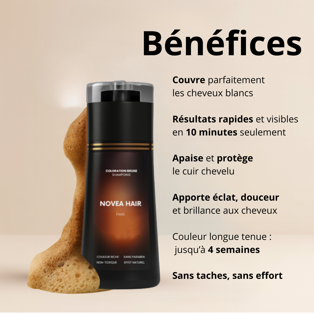 Oui, NOVEA HAIR est conçu pour couvrir les cheveux gris de manière uniforme et naturelle. Une utilisation régulière renforce la profondeur et l’intensité de la couleur.